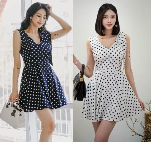 - 全2色 ベストワンピース フリル 切り替え バイカラー スリム 着痩せ ドット柄 sweet系 L ホワイト