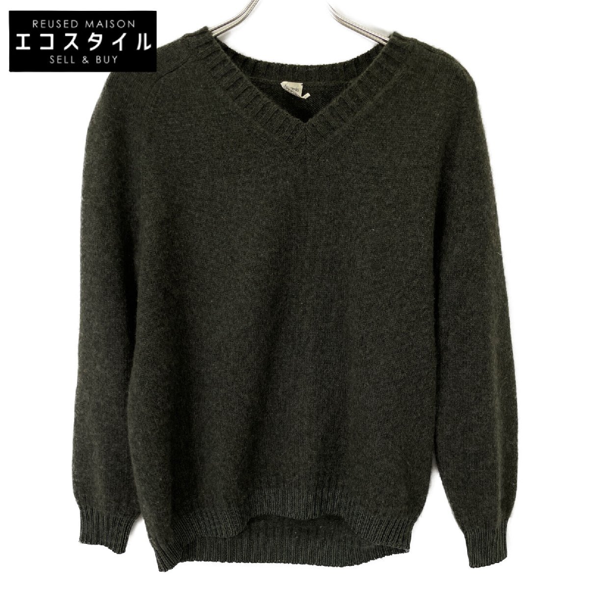> HERMES エルメス 16AW カーキ カシミヤ×モヘア Vネックリブプルオーバーニット グレー 34 トップス 2945 レディース 中古