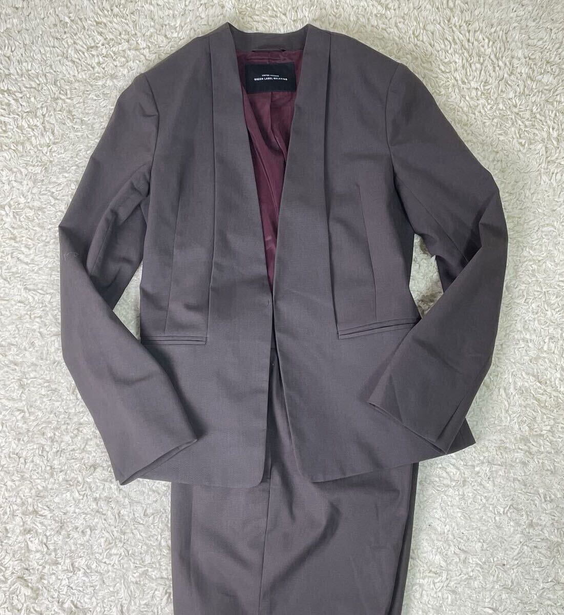 - グリーンレーベルリラクシングレディース ノンカラー スーツ セットアップパンツ ブラウン