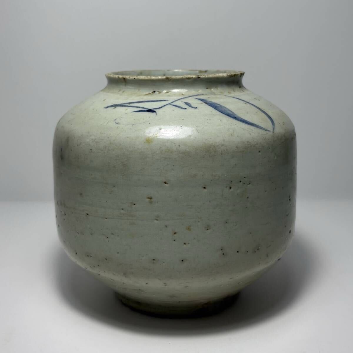 - 韓国美術 李朝 白磁 染付 筒瓶 花瓶 小壺 時代物 分院 李王朝