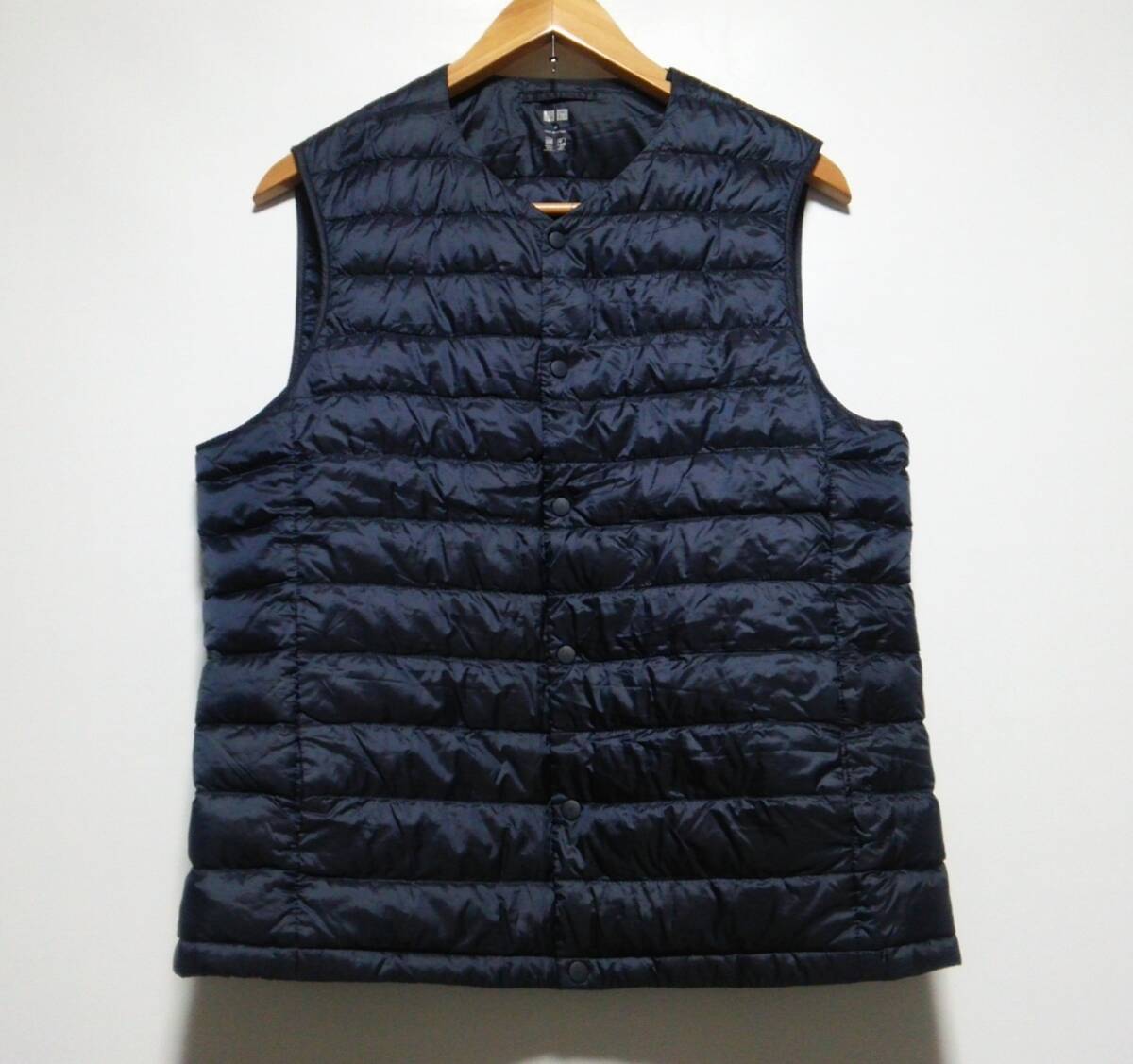 - UNIQLO ユニクロ 秋冬/軽量 ウルトラライトダウンコンパクトVネックベスト ダウンベスト インナーダウン ビジネス スーツ 紺 メンズM