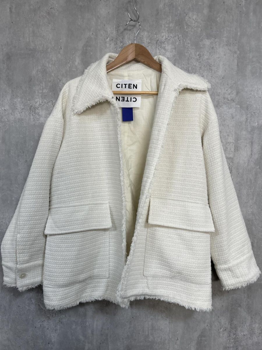 - CITEN ツイード カバーオール ジャケット sizeF/白 ◆■ レディース