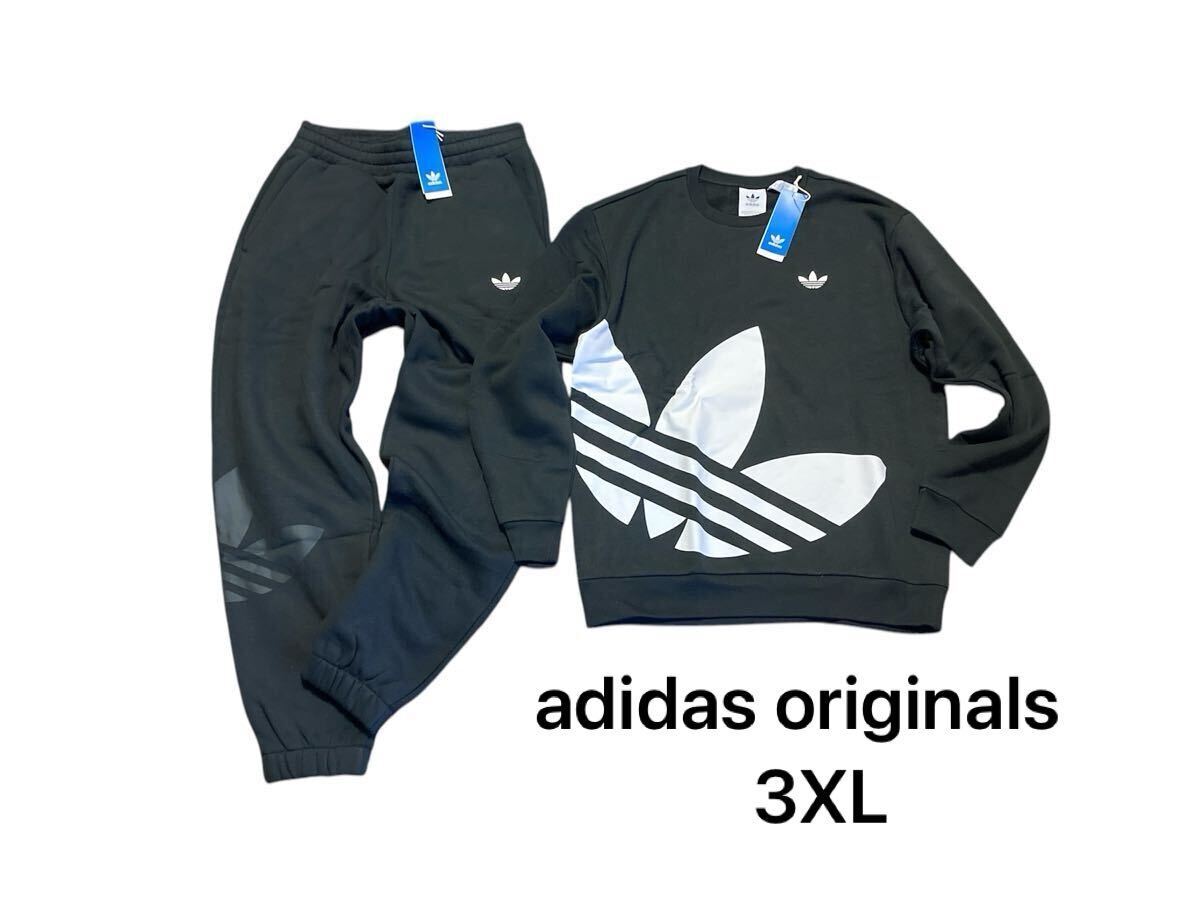 - 新品 正規品【adidas originals】3XL◆トレフォイル スウェットトレーナー&パンツセットアップ◆ブラック 黒◆裏起毛 ビッグトレフォイル