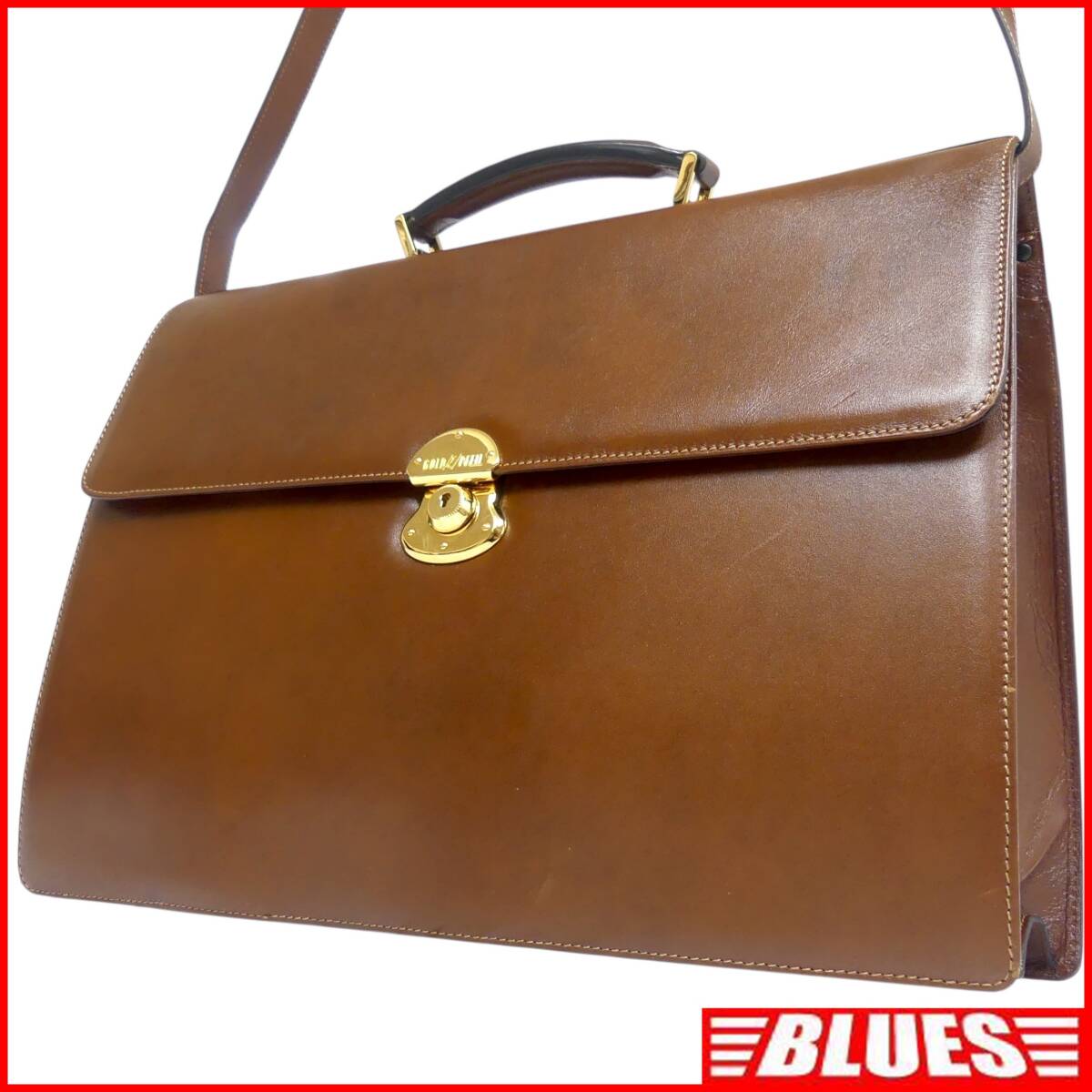 - 即決★GOLDPFEIL★2way ビジネスバッグ ゴールドファイル ショルダーバッグ メンズ 茶 レザー 本革 ブリーフケース 本皮 通勤 出張 鍵付き