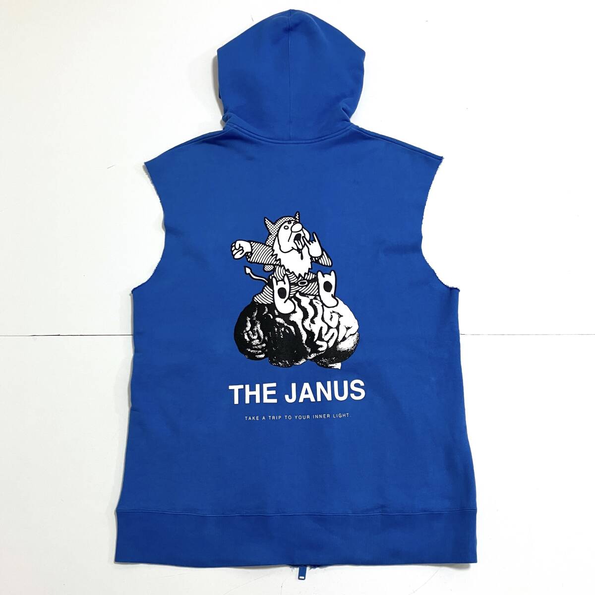 > 2018SS UNDERCOVER 脳 切りっぱなし ノースリーブ スウェット ジップ BIG パーカー 青 アンダーカバー ベスト フーディー archive 2372