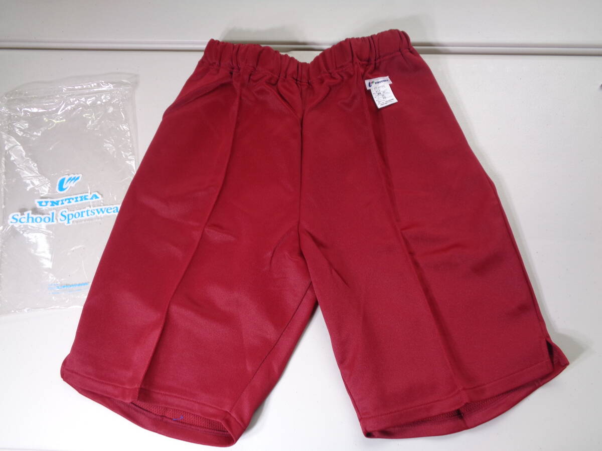 - 胴囲92 えんじ色 unitika ジャージ ハーフパンツ●保管品●レトロ●体操