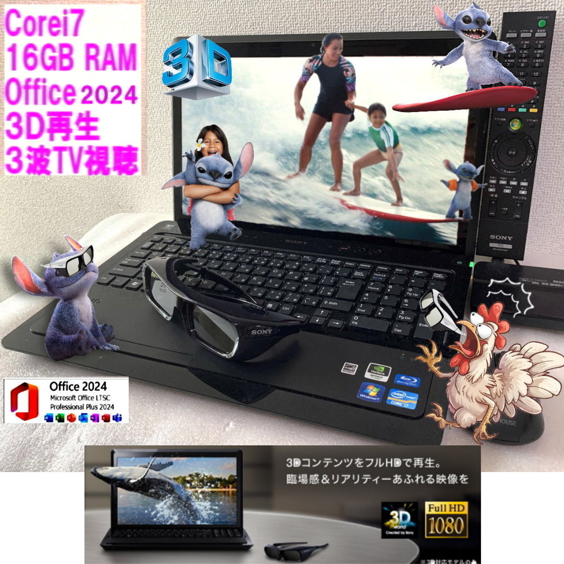 > Win11 pro /SONY VAIO 3Dノート VPCF24AJ/3D/2TB SSD/16GB メモリ/USB TV GV-MVP/VZ/地デジ・BS CS/Office 2024/リロ&スティッチ 実写版