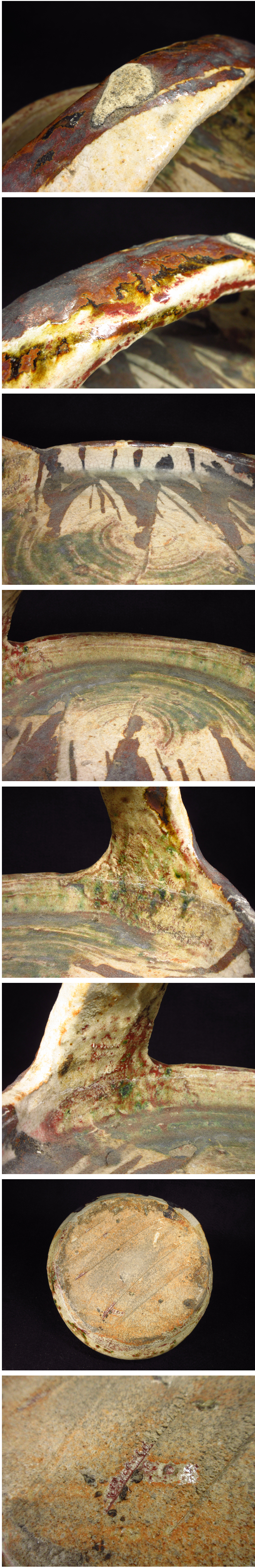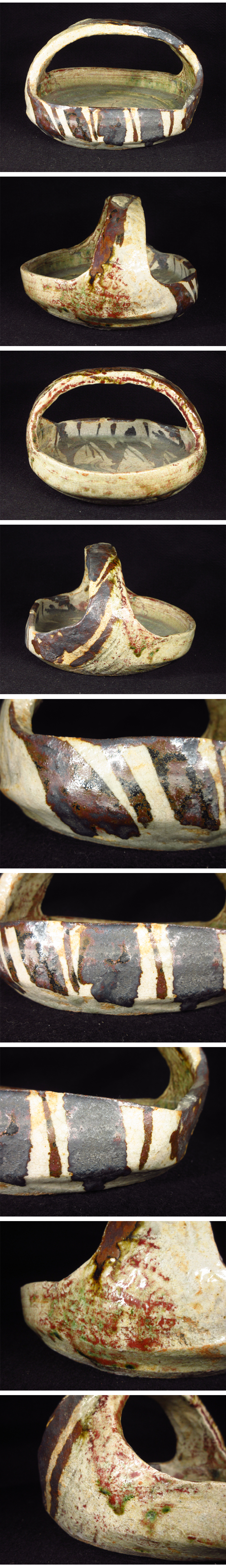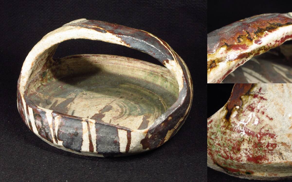 - 【漸】秀逸時代茶道具 織部手付鉢 菓子鉢 古美術 茶道具 本物保証【HY2705】