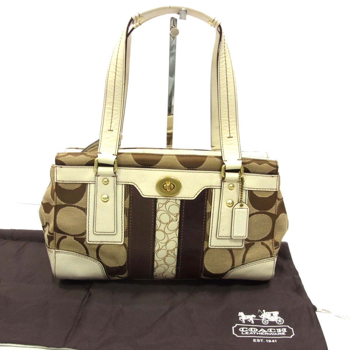 > ◆COACH コーチ ハンドバッグ シグネチャー レザー切替 保存袋付き レディース 1円スタート