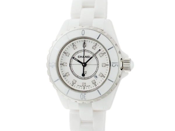 > シャネル J12 33mm 12P純正インデックスダイヤ H1628 ホワイトセラミック メーカー修理済