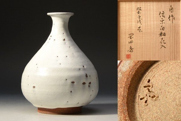 - U08332 岡田斎 世界救世教 3代教主 自作 信楽 白釉 花入 花器 茶道具 共箱 岡田茂吉 の孫 /G104