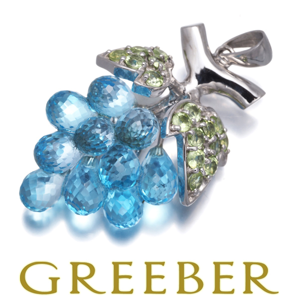 - トパーズ 8.98ct ペリドット 0.60ct 葡萄 フルーツ ペンダントトップ K18WG GENJ