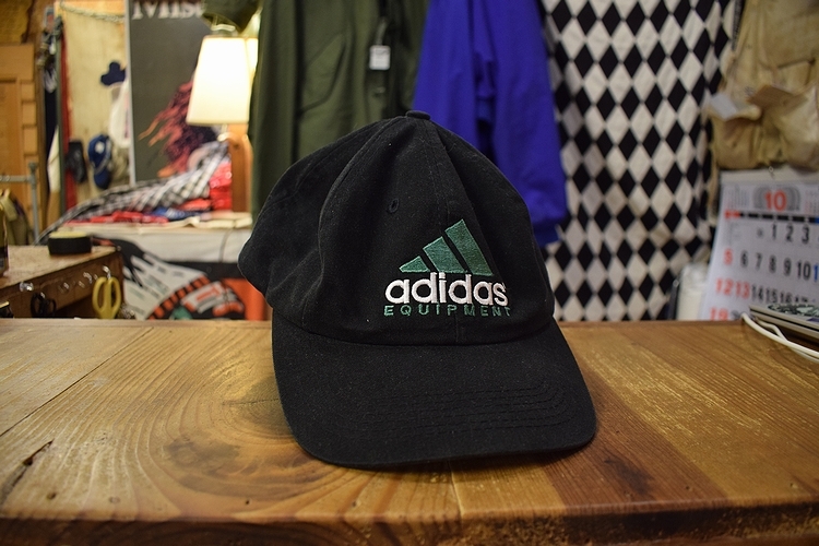 > デッドストック◎90sビンテージAdidasアディダスEQUIPMENTイクイップメント6パネルキャップフリーサイズ黒×緑アメカジストリート x977