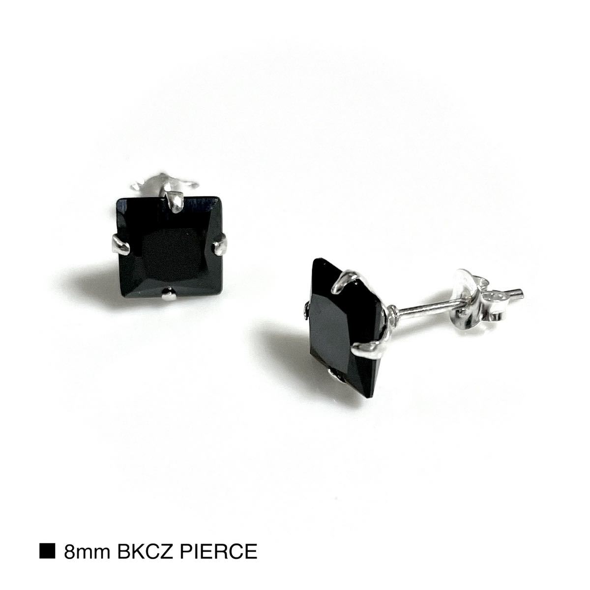 - 両耳用 2個 シルバー925 大粒 ブラック キュービックジルコニア ピアス アクセサリー スクエアカット スタッズピアス
