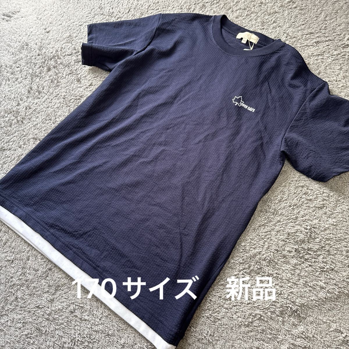 - こども服 ポイント刺繍メッシュストライプドライ半袖Tシャツ紺170★ゆうパケット配送可能★新品35