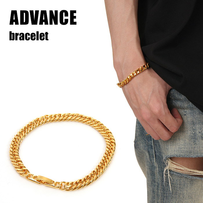 > 【新品】ADVANCE ブレスレット ゴールド 金 メンズ レディース K18メッキ おしゃれ ヒップホップ ストリート ブランド ARG-8705A