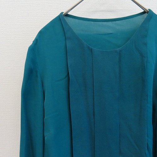 【ブランド】ヨシエイナバ YOSHIEINABA【アイテム】プルオーバー シャツ ブラウス 【表記サイズ】9【平置き実寸】肩幅:約 36cm袖丈:約 58.5cm身幅:約 50cm着丈:約 58.5cm【状態】目立った傷汚れなし【備考】やや透け感のあるお品です。【色】グリーン系【素材】画像をご参照ください。★当店の商品はすべてリユースアイテムとなります。特質上、些細なダメージは記載しておりませんので着用に問題のない使用感、着古した雰囲気などはご了承くださいませ。キーワード/アクイール/古着/used/ビンテージ/ヴィンテージ/昭和/レトロ/緑系/株式会社ビギ/絹