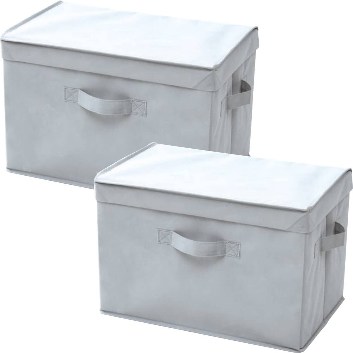 - [山善] ふた付き 収納ボックス 2個組 カラーボックス対応 取っ手付き 幅38×奥行25×高さ25cm 完成品 グレー YTCF-2PF(GY