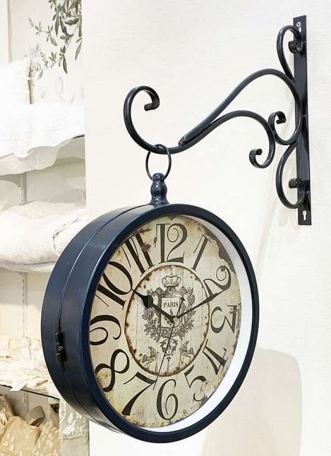 - 輸入雑貨 ステーションクロック 壁掛け時計 リビングスタジオ 直輸入 両面時計 シャビー アンティーク ヨーロピアン 57103WC 送料無料
