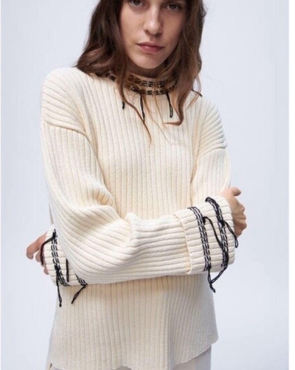 - 新品 ZARA 長袖 ステッチ素材 リブニット