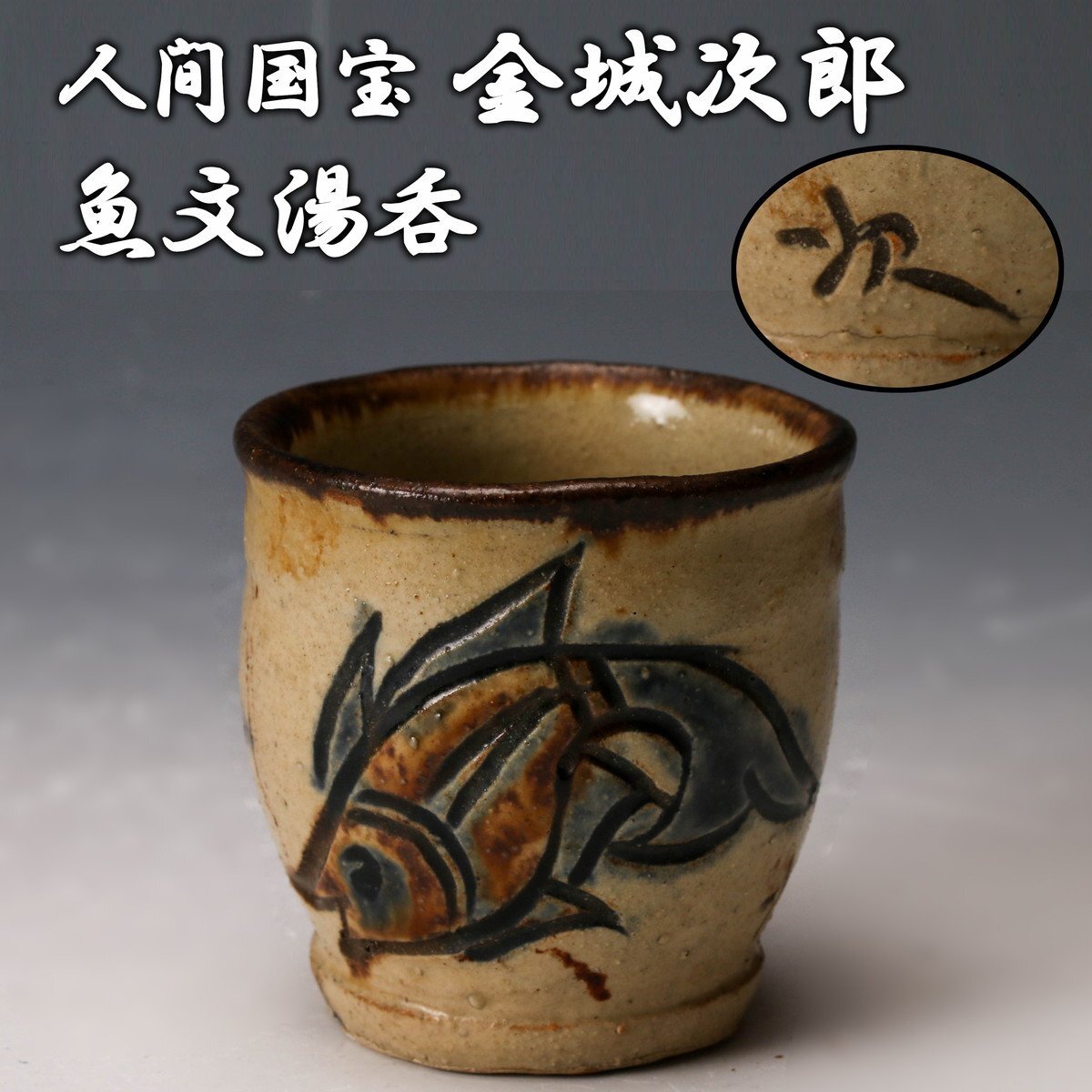 【佳香】人間国宝 金城次郎 晩年作 魚文湯呑 本物保証拍卖