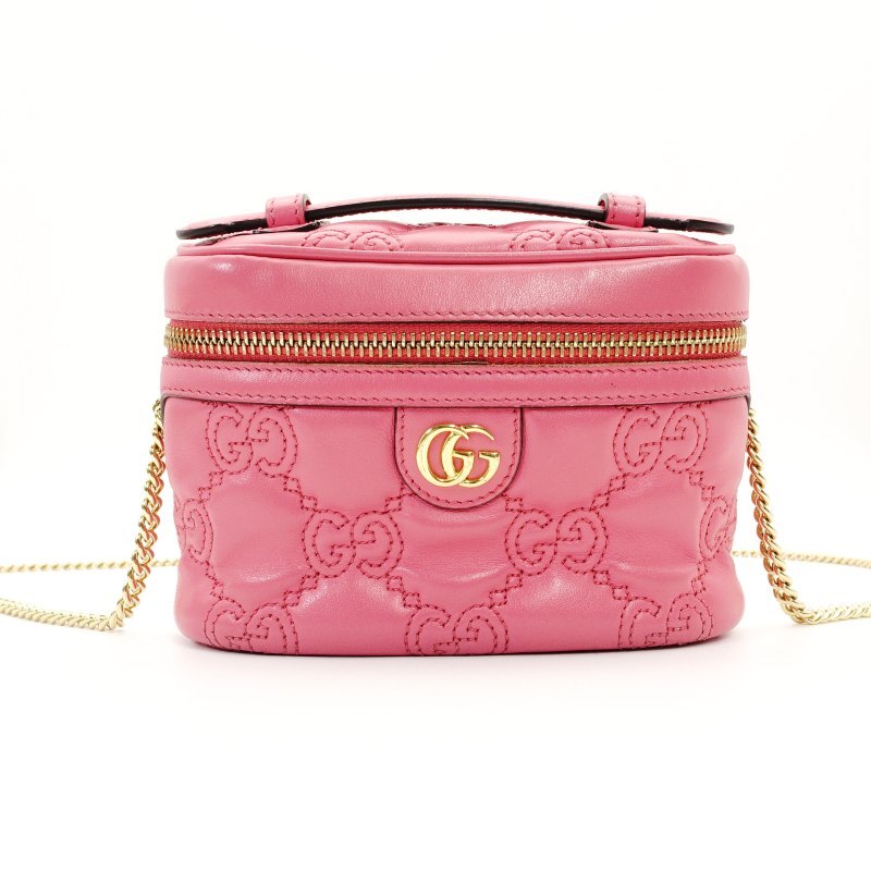 > グッチ GUCCI GGマトラッセ レザー チェーン ショルダーバッグ ピンク 2way バニティ GGロゴ 箱付き 7-8-528