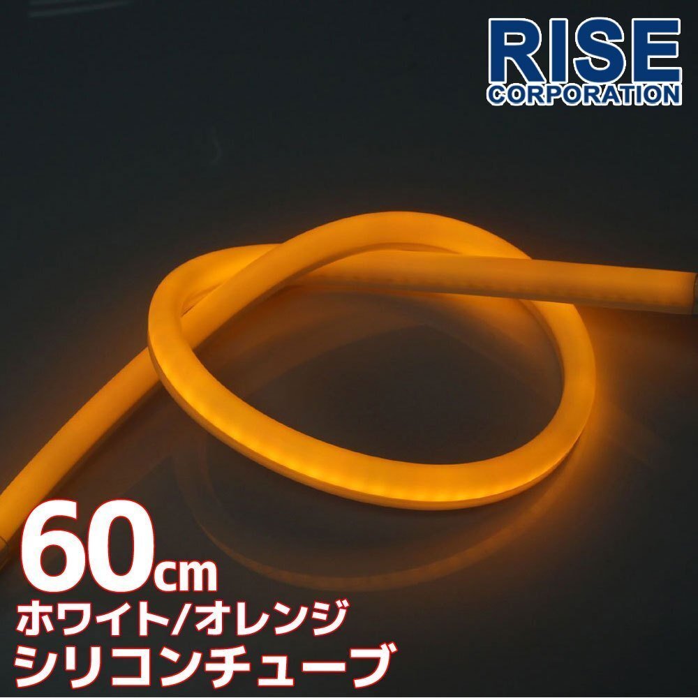 > LED シリコンチューブ 2色切り替え発光 ホワイト・オレンジ 60cm 12V 自動車・バイク エレクトロタップ付 ランプ ヘッドライト アイライン