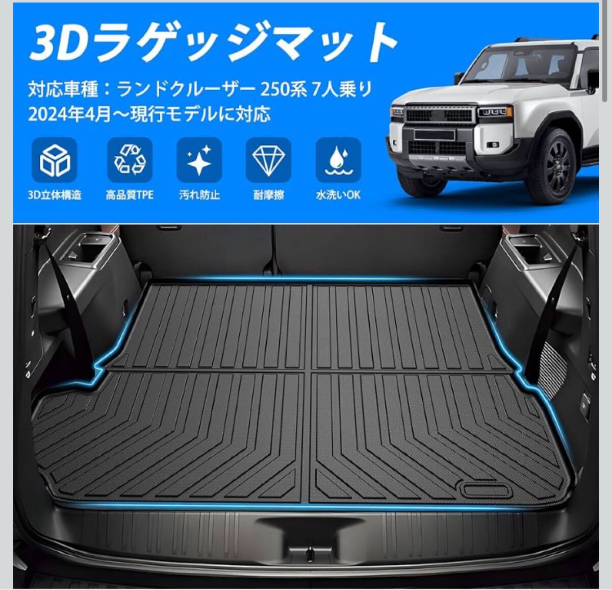 > トヨタ 新型 ランドクルーザー 250系 7人乗り対応 3D ラゲッジマット 2024年4月~ GDJ250W TRJ250W ランクル 250 LAND CRUISER 専用