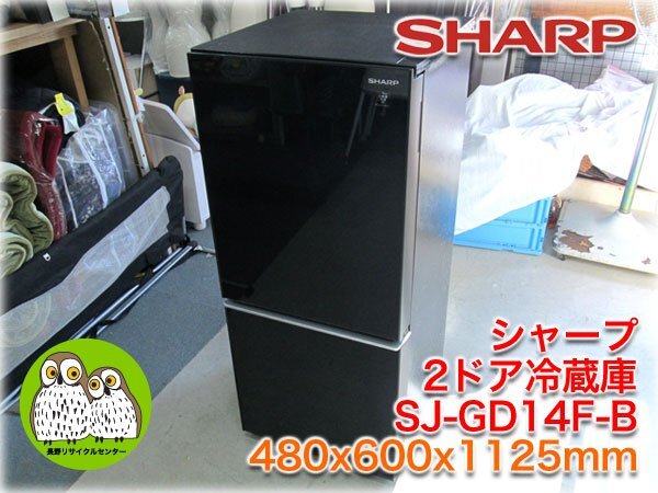 > シャープ 2ドア冷蔵庫 SJ-GD14F-B 480x600x1125mm 137L(冷蔵91L/冷凍46L) ガラスドア つけかえどっちもドア PLAINLY 【長野発】