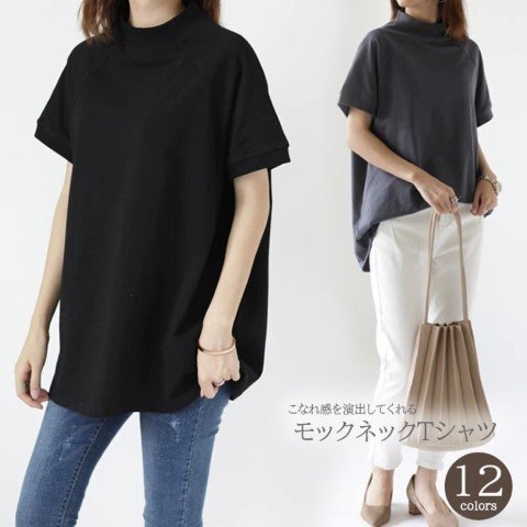 - Tシャツ 半袖 クルーネック レディーストップス ゆったり シンプル 春夏 モックネック 大きめ(XL) チョコレート色