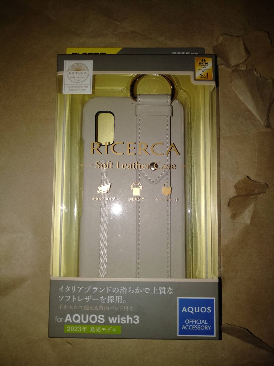> ELECOM AQUOS wish3 SH-53D グレージュ色 オープンソフトレザーケース イタリアンCoronet 落下防止バンド付 スタンド機能付 心地良い使用感
