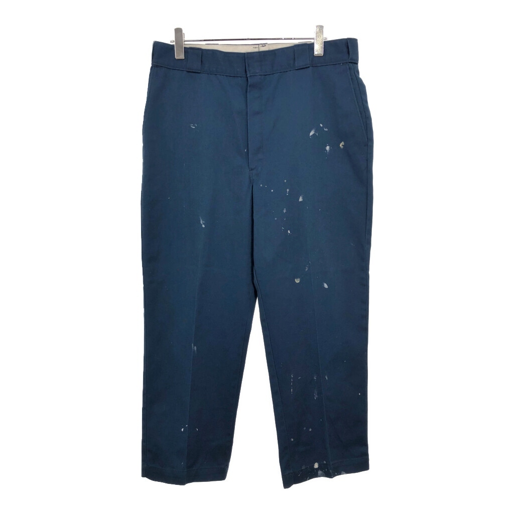 - 90年代 USA製 Dickies ディッキーズ 874 ワークパンツ ペンキ ネイビー(メンズ W38 L29相当)中古 古着 V0880