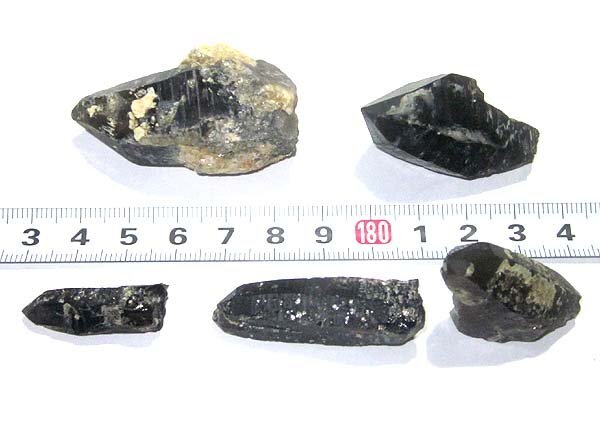 - 日本の鉱物 岐阜県蛭川村田原の煙水晶/黒水晶 5個セット/約64g