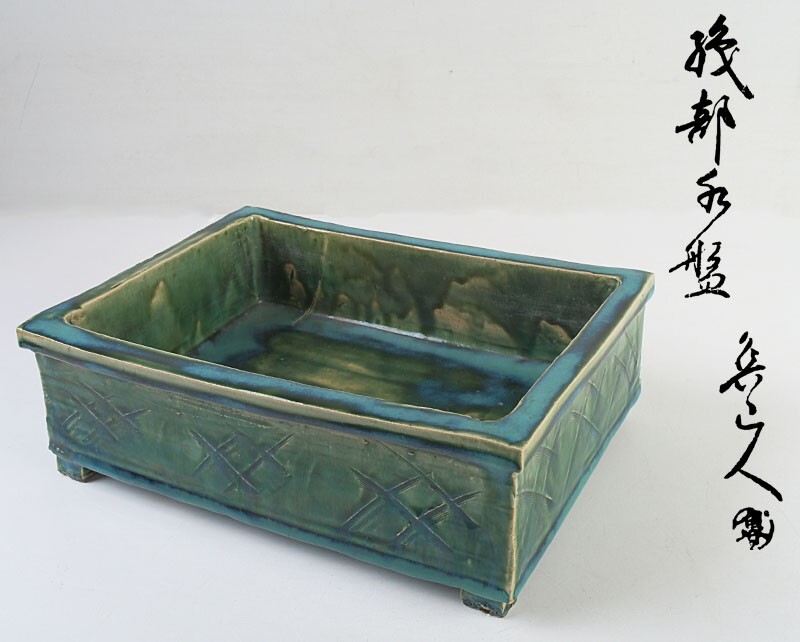- 北大路魯山人作 織部焼 井桁文 水盤 共布 共箱二重箱 SEWA