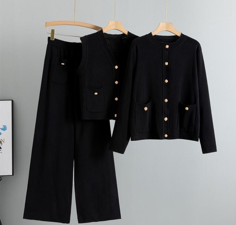 - M1017 パンツスーツレディース● 着心地抜群 20代30代40代 ● 秋冬 3点セット black