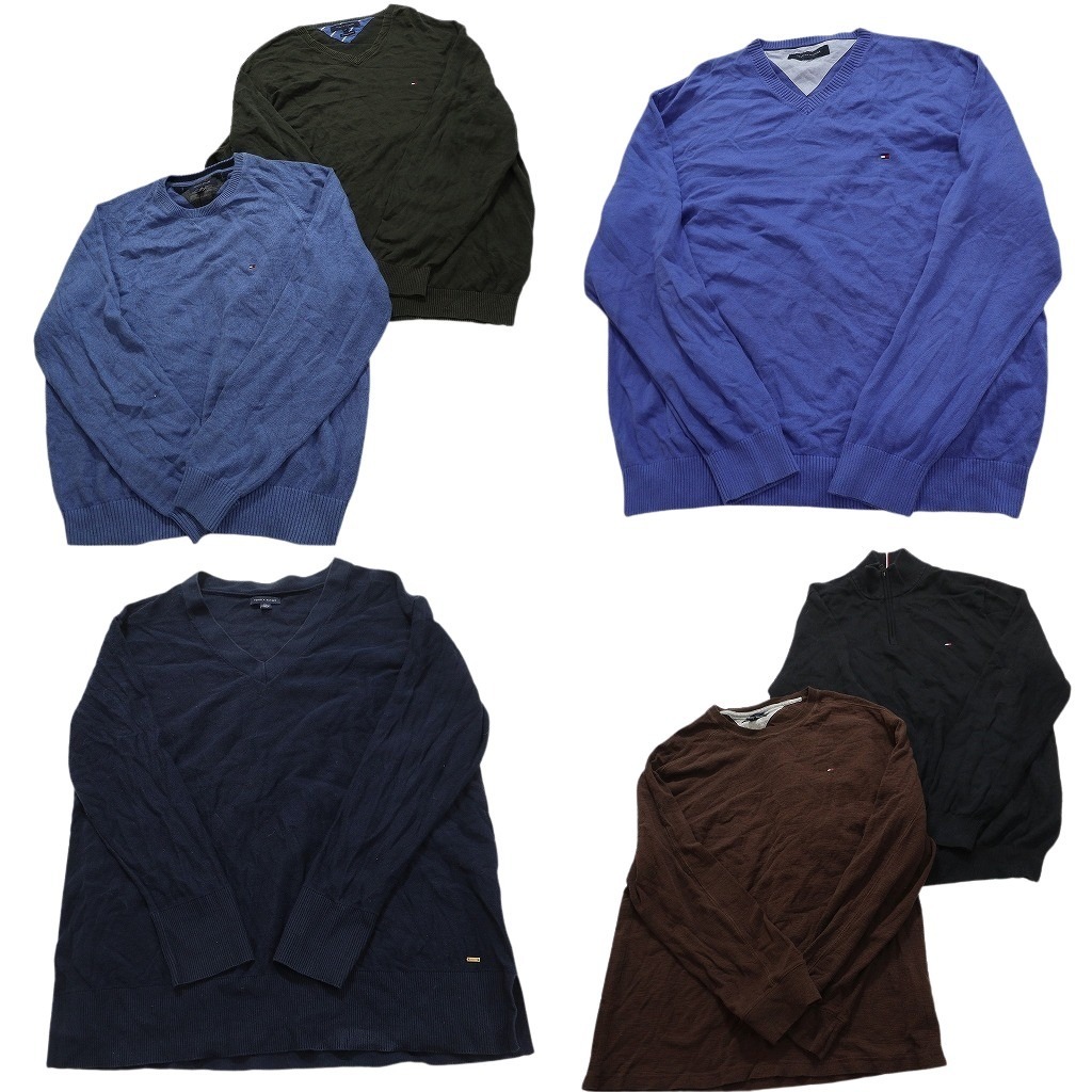 - 古着卸 まとめ売り トミーヒルフィガー セーター 6枚セット (メンズ 2XL /4XL ) ハーフジップ ブラック ブラウン NC3111 1円スタート