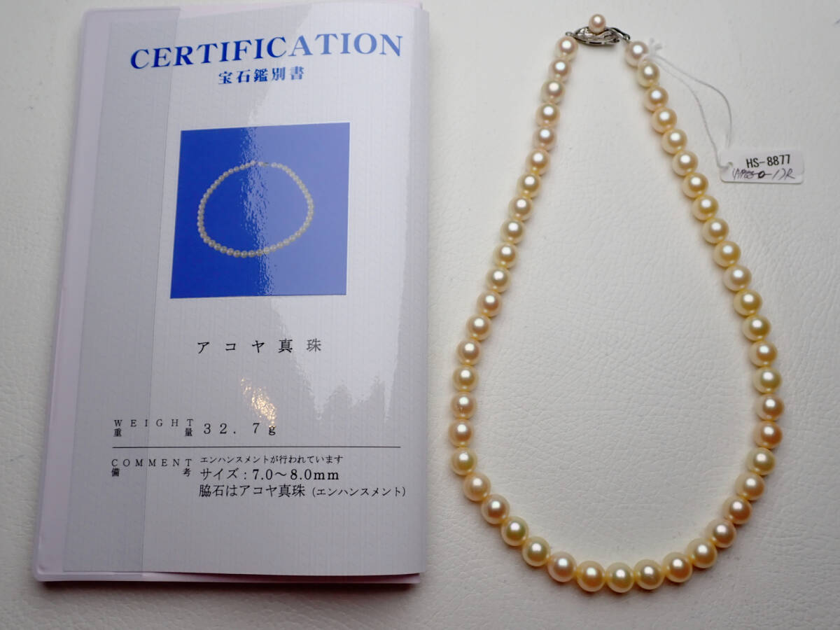 - 12●アコヤ真珠 ネックレス 7.0~8.0mm 32.7g 鑑別書付