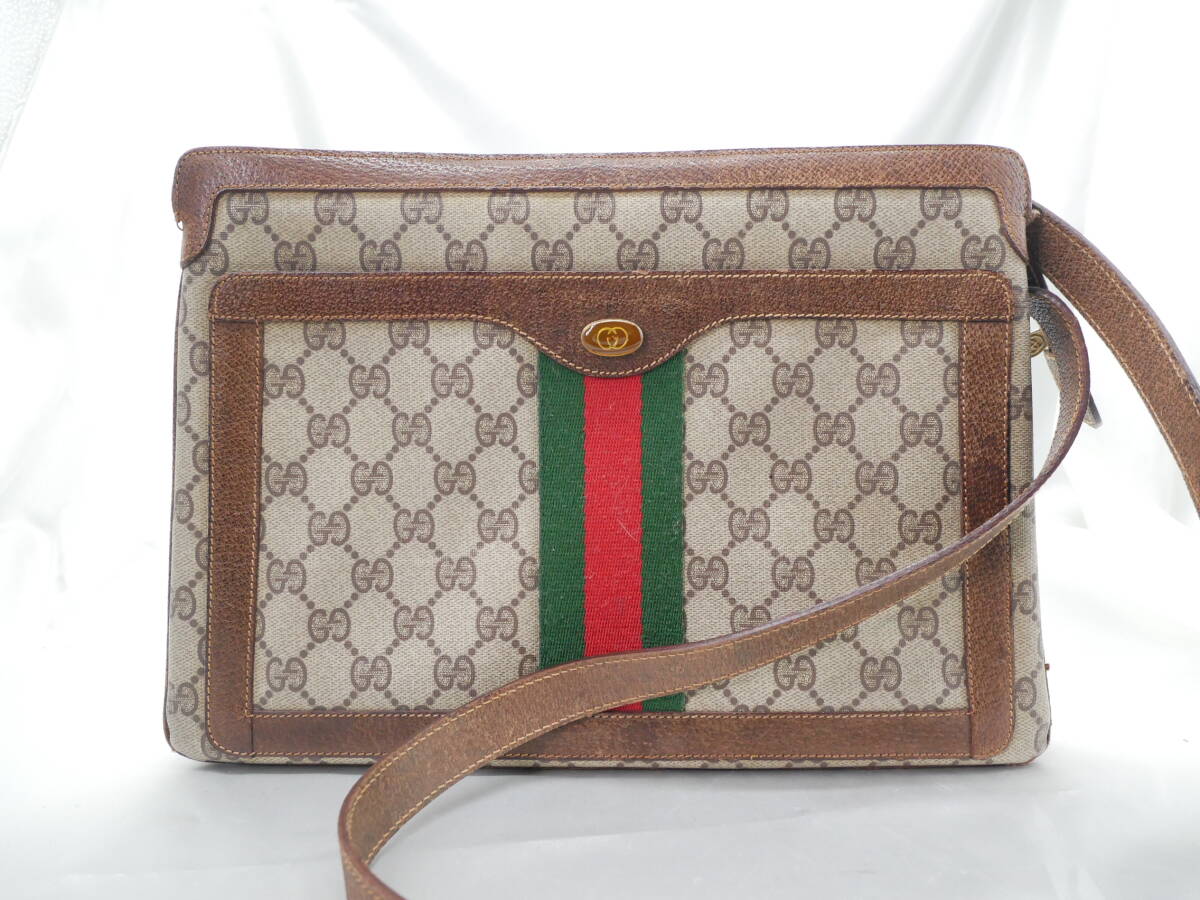 - Gucci グッチ GGスプリーム シェリーライン ブラウン ショルダーバッグ クロスボディバッグ