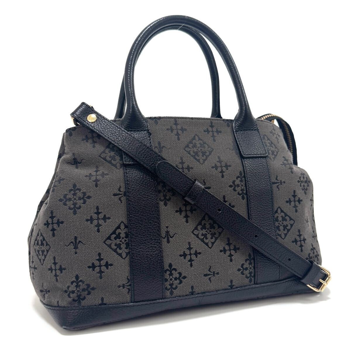 - ラシット 2way ハンドバッグ トートバッグ ショルダーバッグ 斜め掛け 鞄 グレー ブラック ゴールド キャンバス ジャガード レザー russet