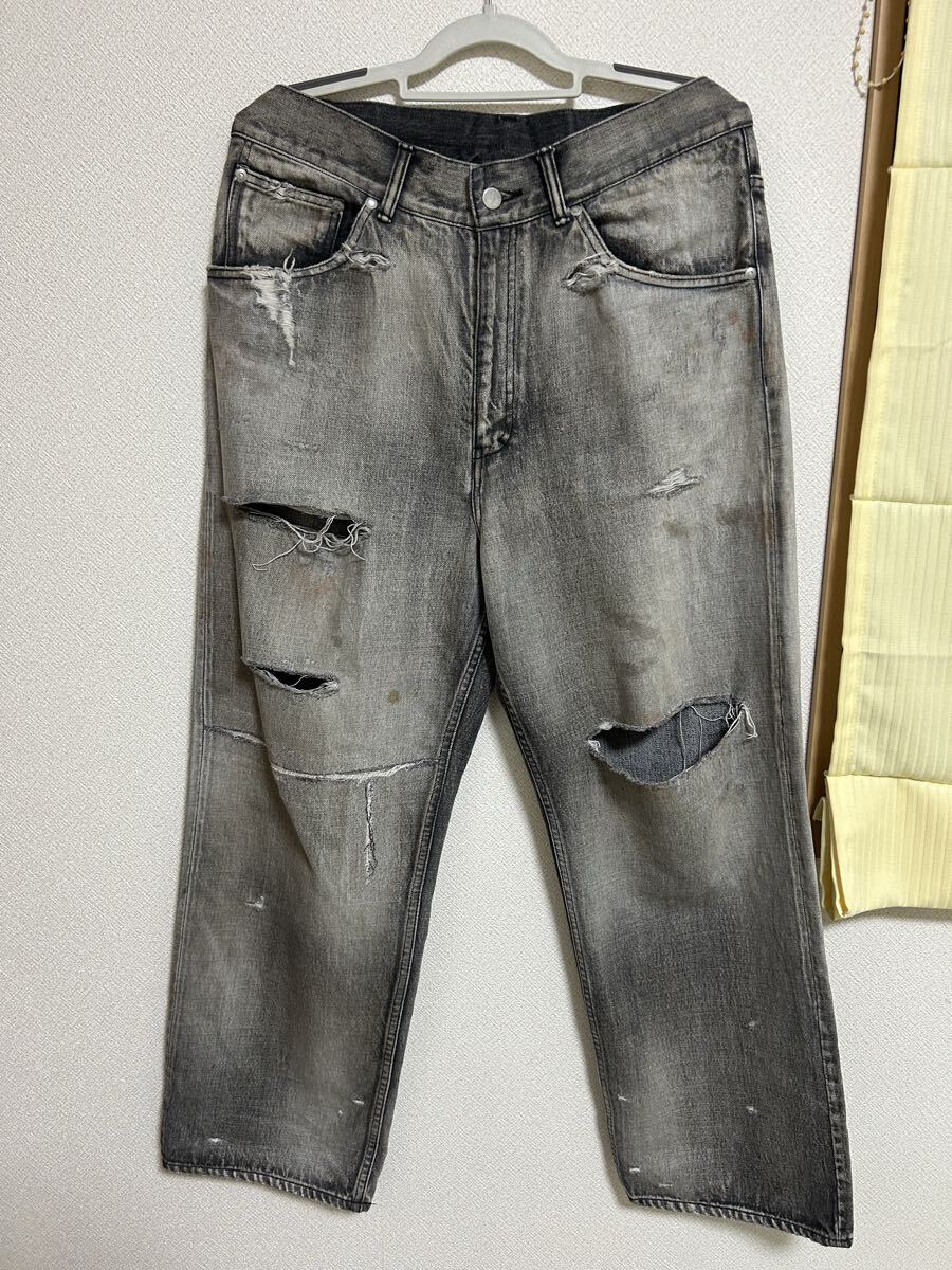 - ancellm アンセルム ストレート デニム ダメージ加工 ヴィンテージ加工 ブラック ジーンズ