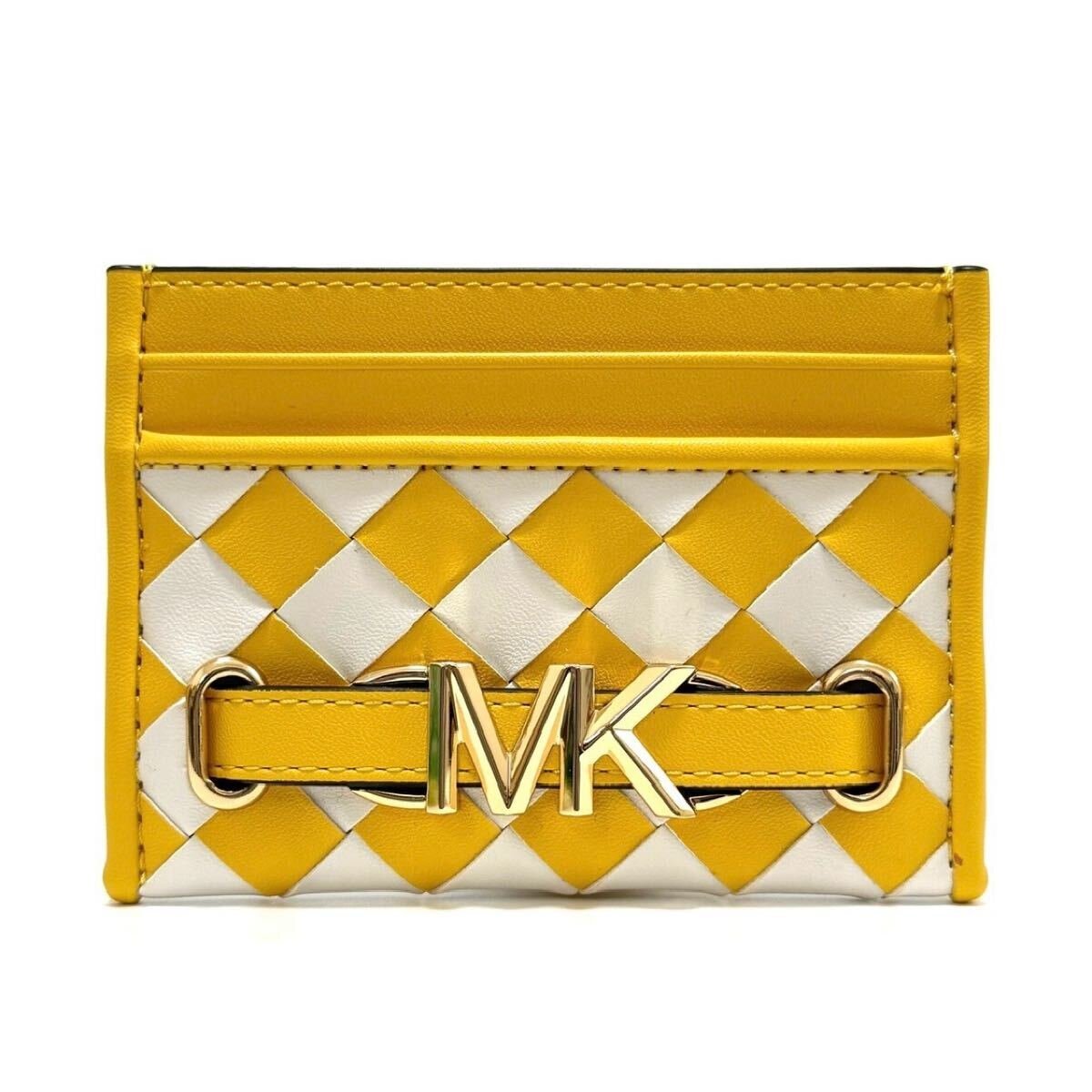 - マイケルコース リード ラージ カードホルダー カードケース パスケース 定期入 イエロー ホワイト 黄 白 レザー 革 MK ロゴ MICHAEL KORS