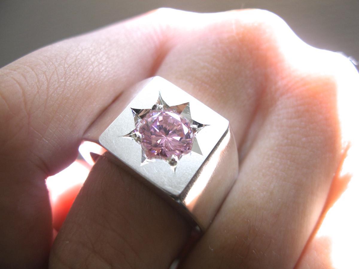 - 仁尾彫金『一つ星ピンクジルコニア印台リング』ハンドメイド161