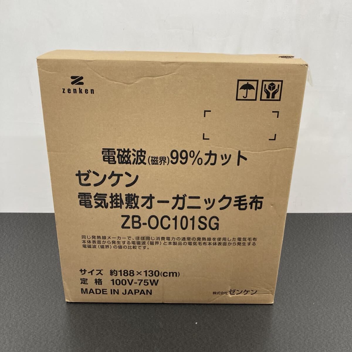 - 未使用保管品 電磁波99%カット ゼンケン 電気掛敷 オーガニック毛布 ZB-OC101SG サイズ188×130 100V 75W 日本製