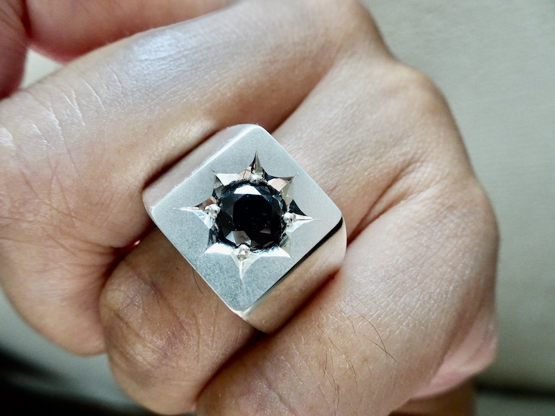 - 仁尾彫金『一つ星ブラックジルコニア印台リング』ハンドメイド148