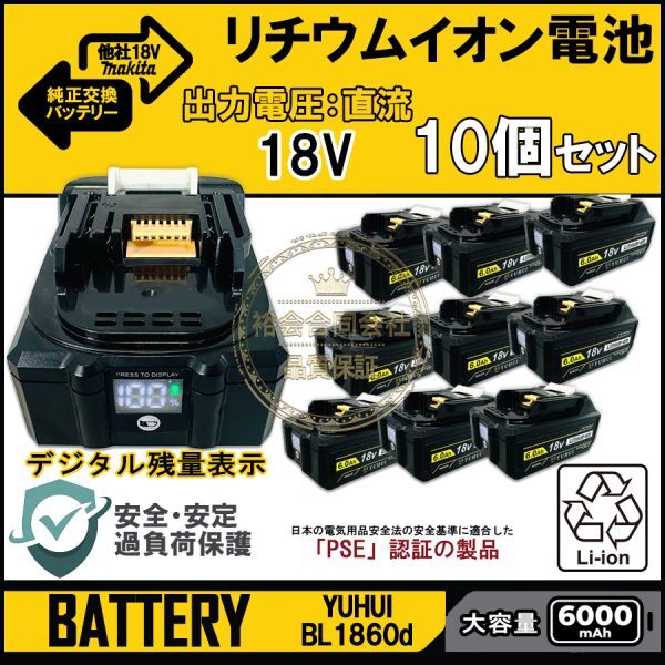 - ★送料無料・30日間保証付き★デジタル残量表示(10%-100%) 10個セット マキタ18V 6.0Ah バッテリー PSE取得済み-