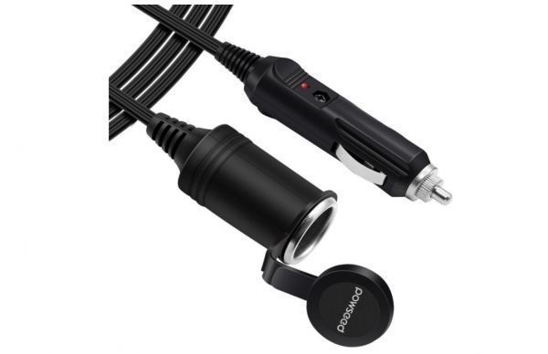 - シガーソケット 延長ケーブル DC電源 12V 24V キャップ付き パイロットランプ内蔵 15A シガーアダプター用延長コード ブラック E249 4.5m