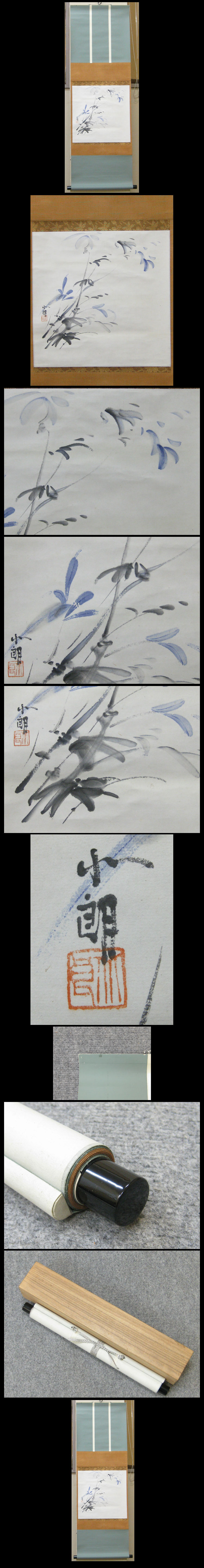 - 【心庵】掛軸 内島北朗 紙本 花図/肉筆 付箱 真作 A1147