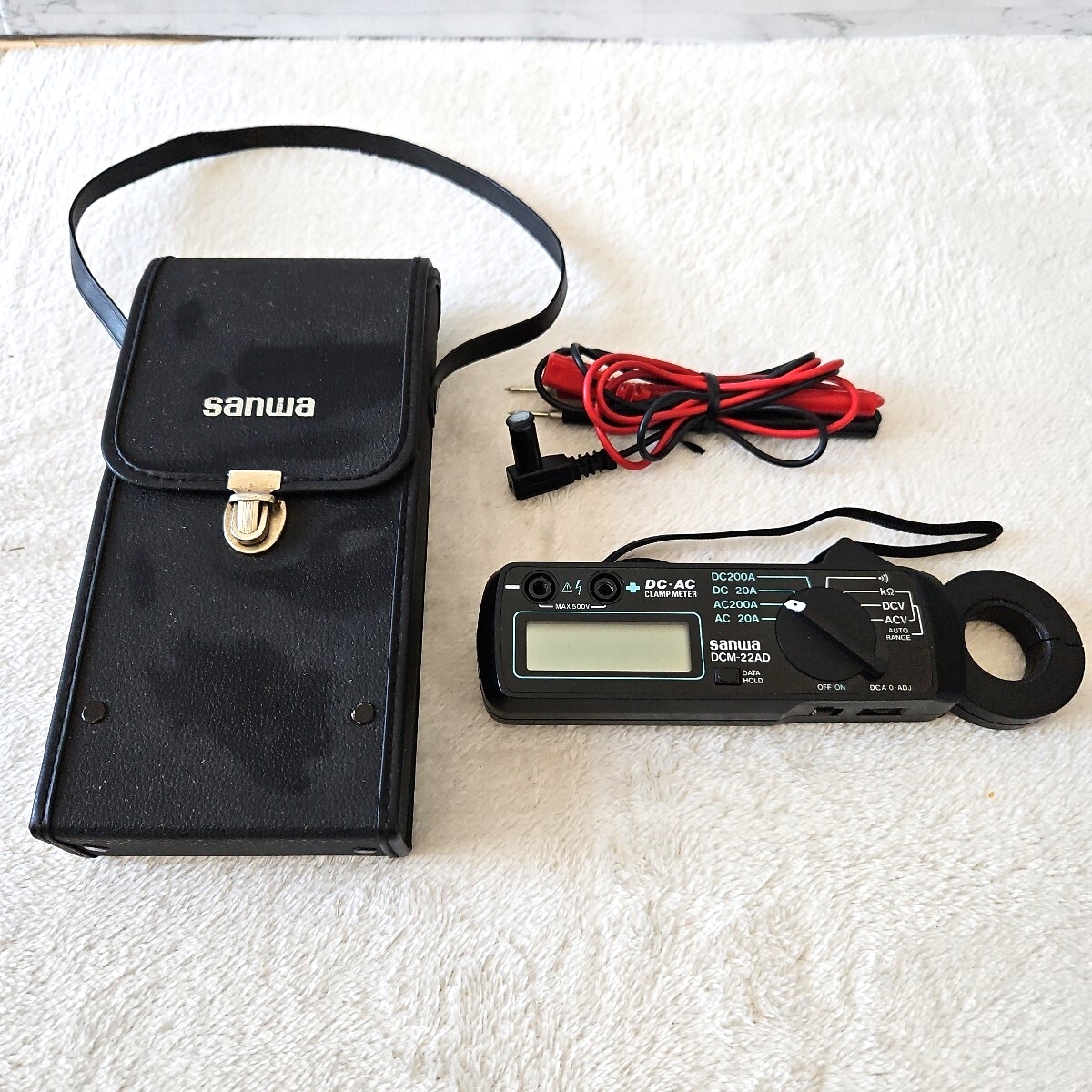 > 【廃盤品】sanwa DC/AC両用デジタルクランプメーター DCM-22AD 通電のみ確認 電池室、軽微な液漏れ跡あり