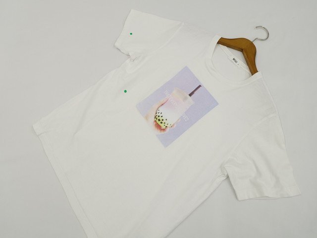 > 美品 ウィゴー WEGO 半袖 ラウンドネック Tシャツ M ホワイト地 ドリンク柄 プリント 【メール便可】