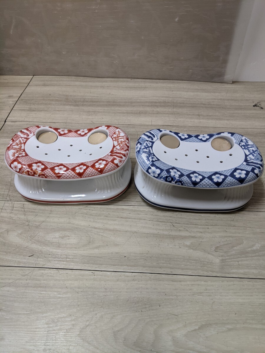 - エマンテ ヘルス枕 陶器製 南風窯 磁器枕 赤と青 2点 検 家庭用品 寝具 枕